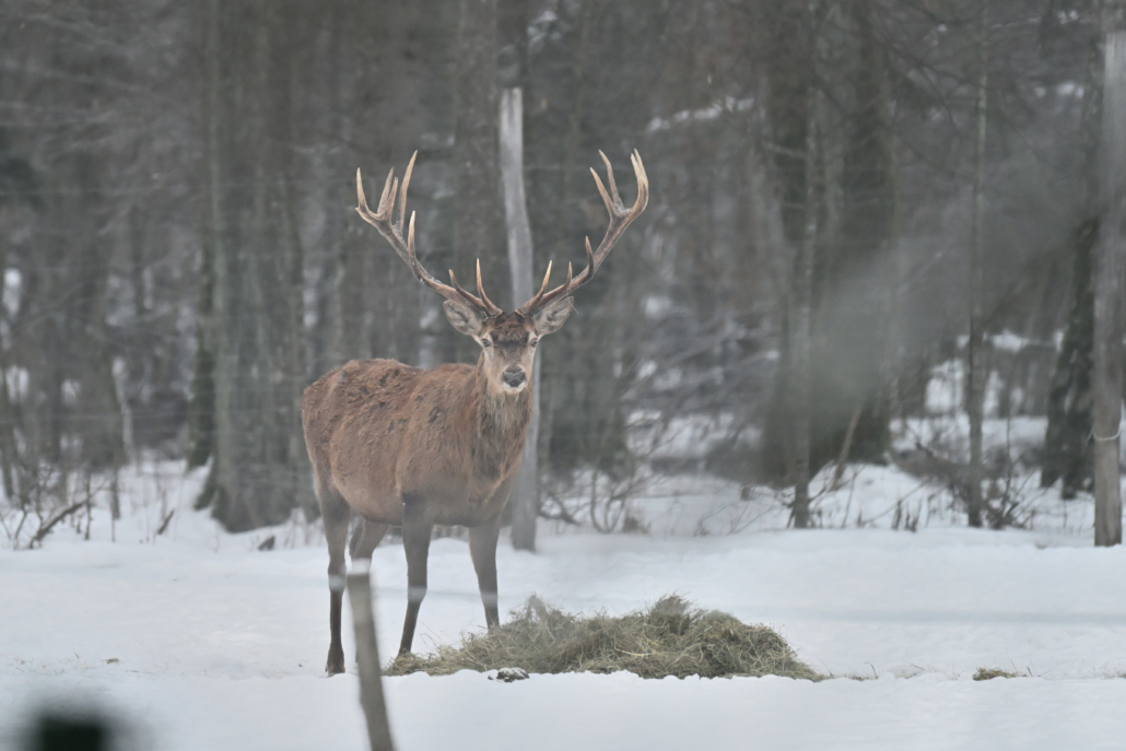 The Red Deer visited the farm where hay had been left out for horses.