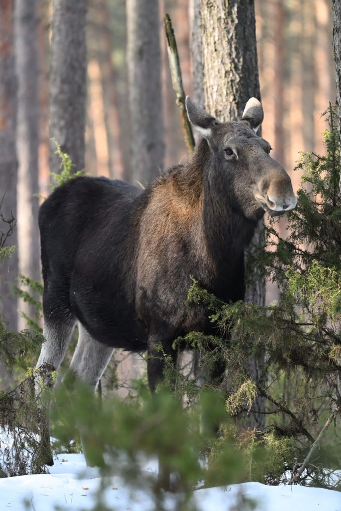 Elks in winter switch their diet – from willow on the marshes to pines & junipers in coniferous forests.