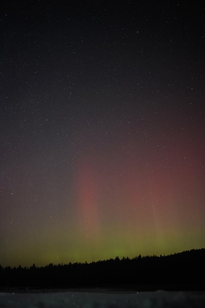 Aurora borealis over wintery conditions of NE Poland.