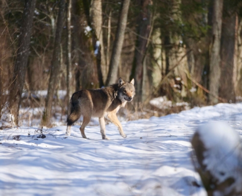 We mainly focused on Bisons and Wolves but from the beginning it was clear that the chances of seeing Wolves are not guaranteed, but we were so lucky because Oliwier was always right where we might find them and saw them twice, one we even saw & heard howling pretty close to us. Oliwier also found the kill of a wolf pack. In addition, we also saw and heard owls, saw many different birds, red deer, a red fox and a racoon dog. The Bison encounters were very special too, first we saw one or two males alone on a field grazing and a herd a bit further away but on our last day, we saw another big herd quite close, so cool, such impressive animals. Another amazing thing was the tracking, we learned so much from Oliwier, saw so many different tracks, from Bison, Deer, Wolf, Fox and Badger, we also saw two Lynx tracks in the fresh snow. The tracking led us through really beautiful parts of the forest. We are so happy that we booked this tour with Oliwier, the whole weekend was amazing, we can really recommend him as a guide, we would always choose him again. Thank you so much Oliwier for this unforgettable weekend!